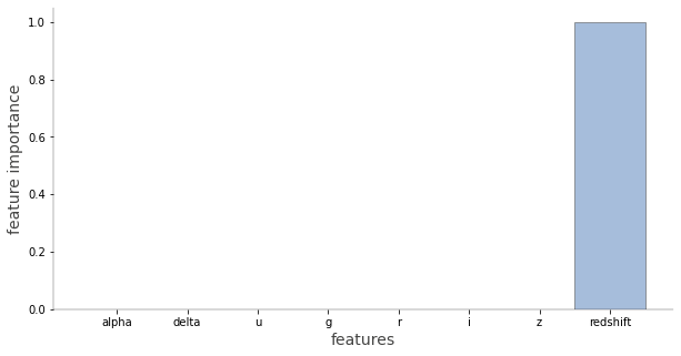df = pd.read_csv("star_classification.csv")#just manually remove all ID-type columns, and classfeatures = ['alpha','delta','u','g','r','i','z','redshift']X = df[features]y = df['class']le = LabelEncoder()y = le.fit_transform(y)